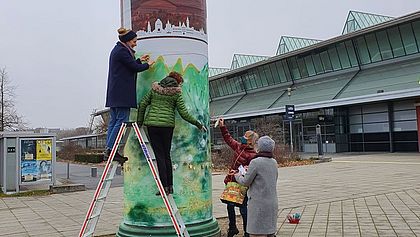 Die Litfaßsäulen an der QUARTERBACK Immobilien ARENA erstrahlen in einem neuen Licht: Kinder und Jugendliche der Kunstschule Richter sowie Hortkinder aus der August-Bebel-Grundschule, angeleitet von dem Projektteam „Wunderfinder“ der Stiftung Bürger für Leipzig, gaben jeweils zwei Litfaßsäulen ein einzigartiges Aussehen.
